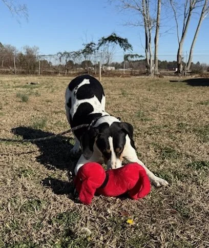 Nelly loves other dogs and truly comes alive when she gets to run, play, and explore in a fenced yard. Watching her zoom around with her dog friends is pure joy — it’s where her confidence shines the most. She would do great in a home with another friendly dog or with a family who enjoys outdoor playtime.