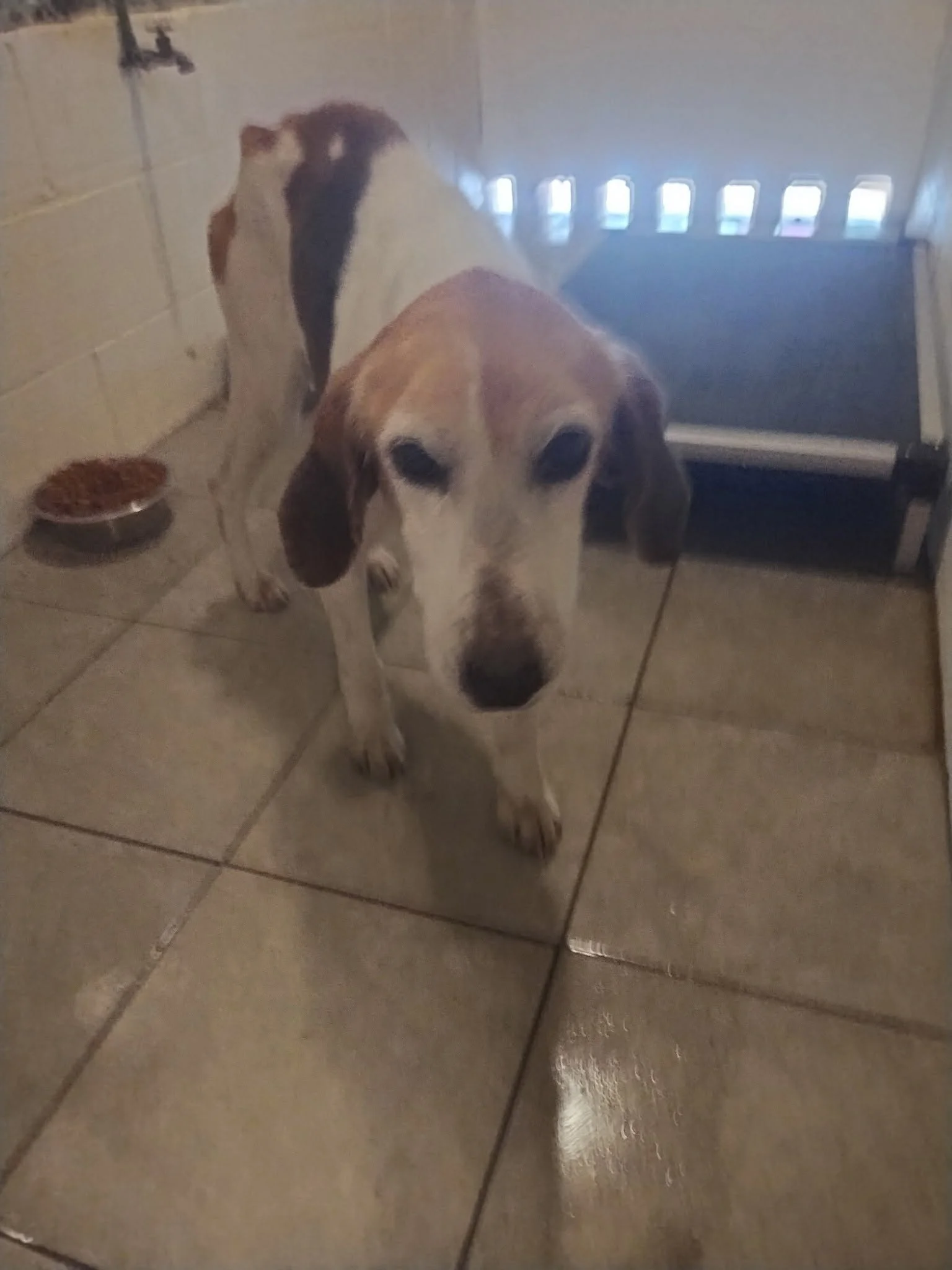 When she arrived at the shelter, she had urine stains on her coat—a quiet sign that life hadn’t been kind to her before. Likely kept in conditions no dog should ever know. Forgotten. Overlooked.