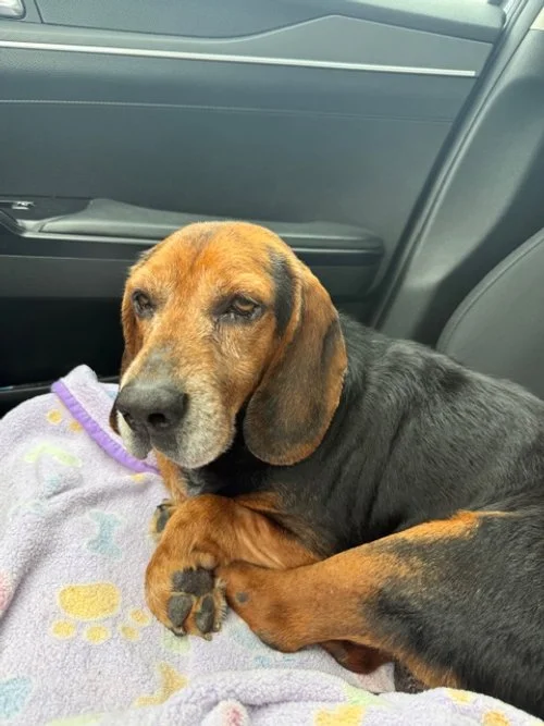 Olive is a truly special girl who is looking for a new home through no fault of her own. She’s a smart, affectionate, and beautifully well-mannered hound who already knows what it means to be a beloved family dog — and she’s hoping for the chance to be one again.