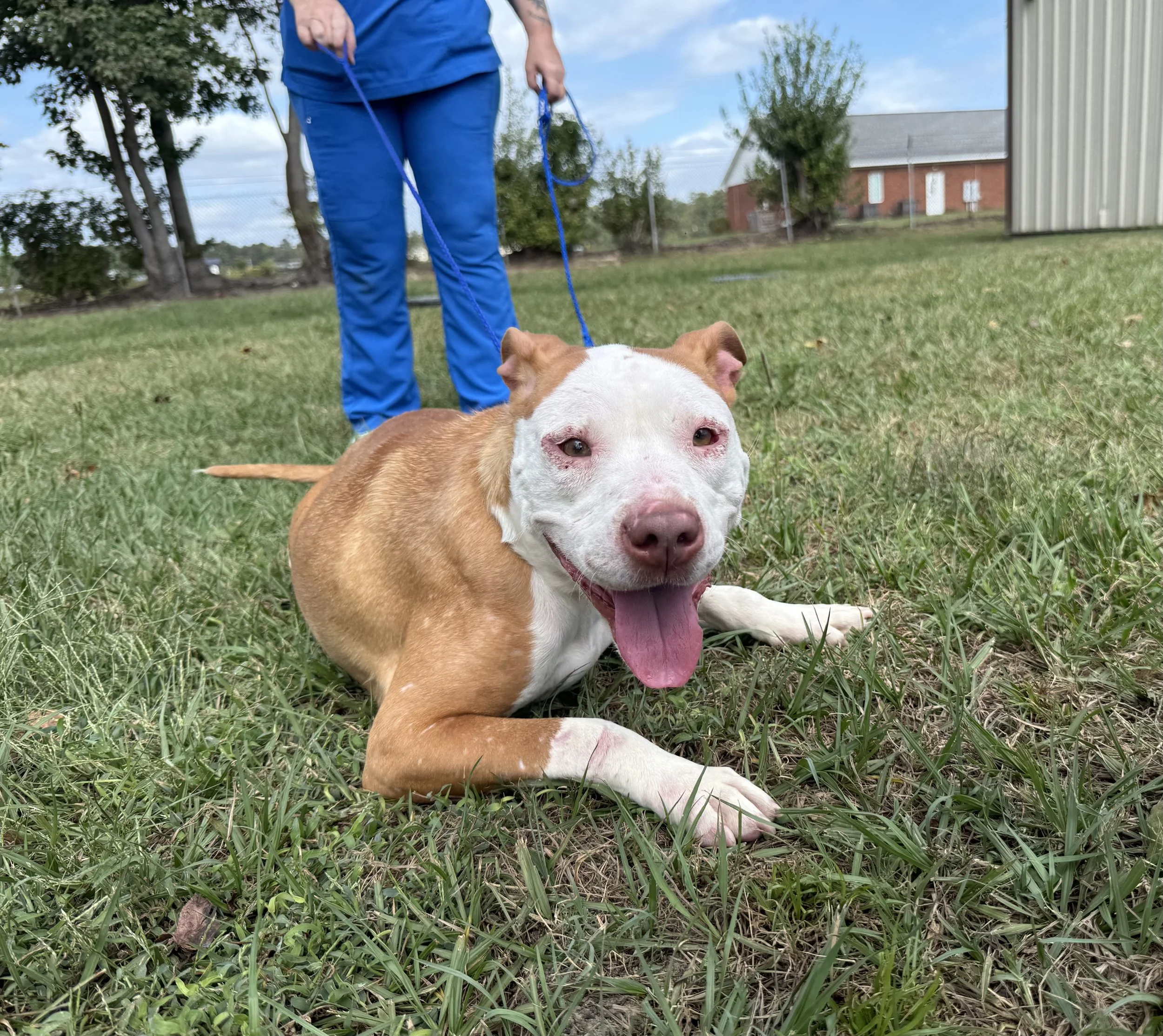 Rescued from a neglect situation, Apple has left all that behind and decided life’s way too short not to celebrate every single day. She’s social, affectionate, and would love a home that enjoys walks, games, and maybe a little wrestling match on the living-room rug.