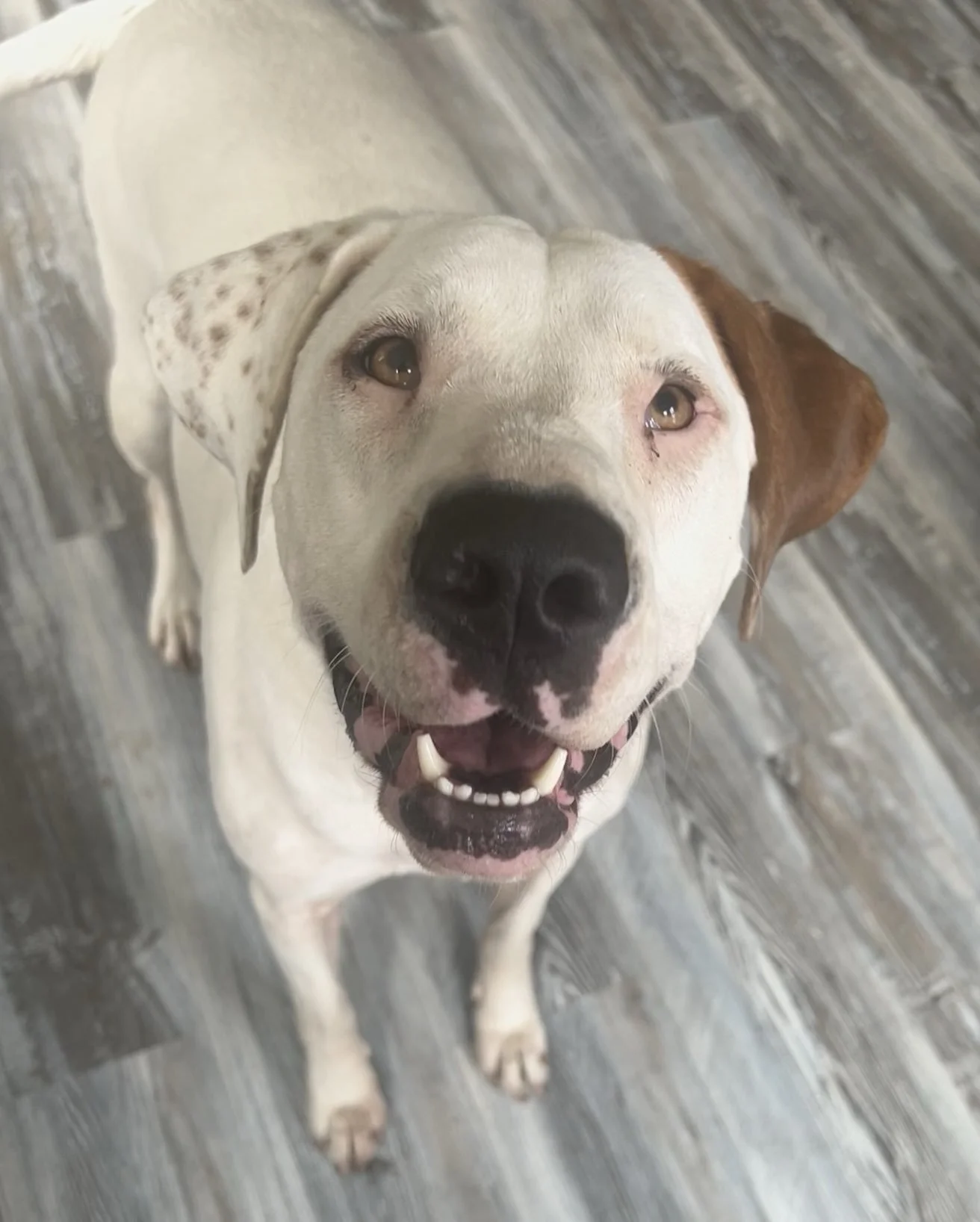 Behind her gentle eyes is a total lovebug who just wants to feel safe and chosen. When Nelly warms up, she becomes incredibly sweet, affectionate, and loyal — the kind of dog who follows you from room to room and melts into your side for comfort.